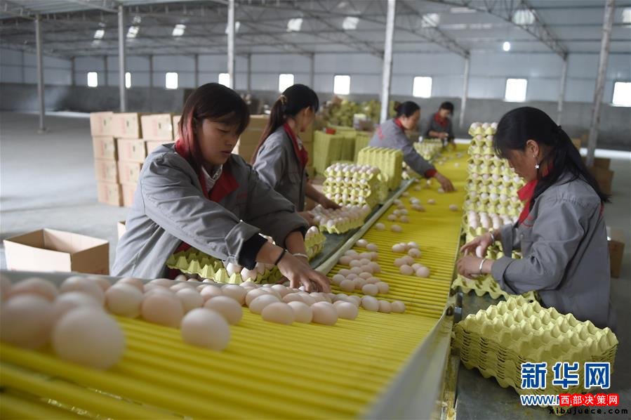 在貴州省畢節(jié)市七星關(guān)區(qū)五里坪村,當?shù)剞r(nóng)戶在一個屬于精準扶貧項目的養(yǎng)雞場內(nèi)分揀雞蛋(2015年11月15日攝)。畢節(jié)市自2014年開始“私人訂制”式精準扶貧工作,根據(jù)當?shù)刎毨魧嶋H情況為其制定扶貧方案,扶貧變“輸血”為“造血”。黨的十八大以來,以習近平同志為總書記的黨中央高瞻遠矚、深謀遠慮,以高度的政治感、使命感和責任感,把扶貧開發(fā)工作提升至治國理政新高度,廣泛凝聚社會各界力量,推進實施精準扶貧方略,為到2020年全面建成小康社會奠定堅實基礎(chǔ)。按照中央部署,通過產(chǎn)業(yè)扶持、轉(zhuǎn)移就業(yè)、易地搬遷、政策兜底等方式,到2020年將實現(xiàn)7017萬農(nóng)村貧困人口脫貧目標。新華社記者 潘昱龍 攝