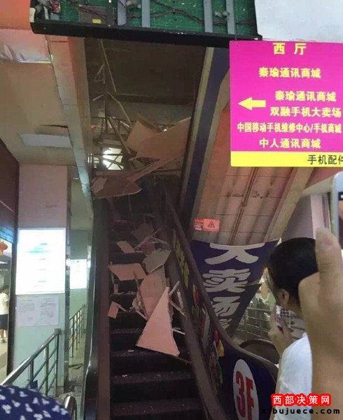 (通訊員 展俊) 今天中午1點左右,西安市西華門海星智能廣場四樓賣場電梯頂?shù)蹴斖蝗幻撀洹I虘魝冋f,房頂是木質(zhì)結(jié)構(gòu),坍塌毫無預(yù)兆。事故所幸暫時沒有人員受傷!