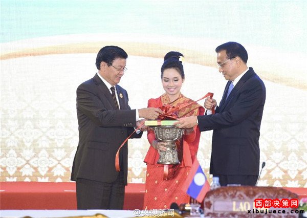 李克強總理7日同東盟10國領導人在老撾萬象共同出席中國—東盟建立對話關系25周年紀念儀式。觀看紀錄短片、發(fā)布對話合作事實與數據手冊后,李克強與東盟主席國老撾總理通倫、中國東盟關系協(xié)調國新加坡總理李顯龍在與會各國領導人見證下一起切蛋糕。