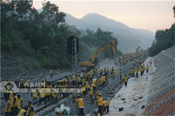 黎湛鐵路電氣化改造工程貴港(根竹)至玉林段施工現(xiàn)場。