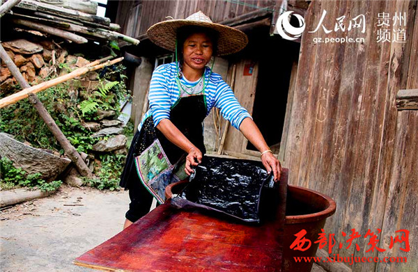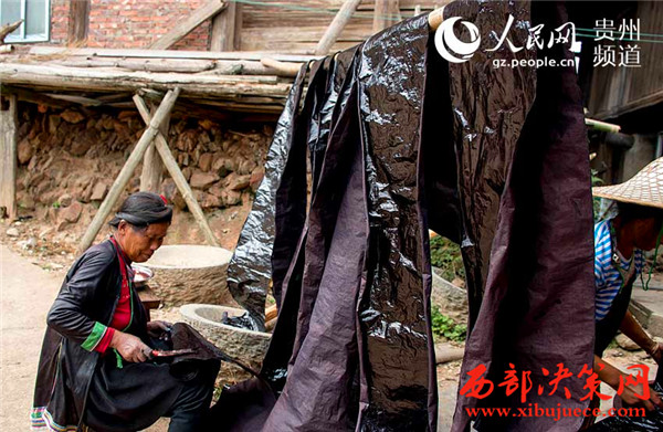 獨(dú)特文化:苗族婦女制“亮布”涂上蛋清做新衣