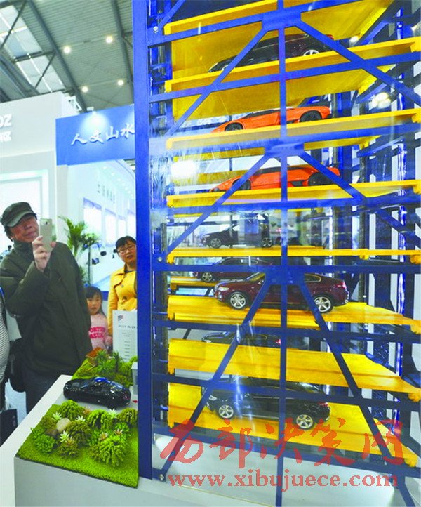絲博會(huì)上,陜西隆翔停車設(shè)備集團(tuán)推出的APP預(yù)約立體智能停車的停車場(chǎng),吸引了大量參觀人員的駐足圍觀。