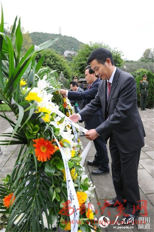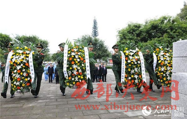 蒼溪縣委主要領(lǐng)導向革命先烈敬獻花籃