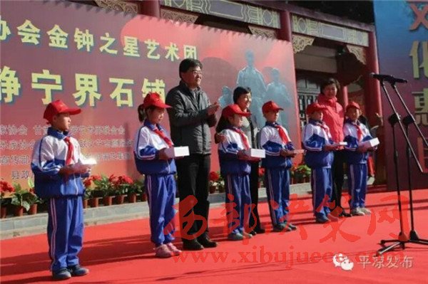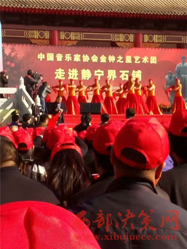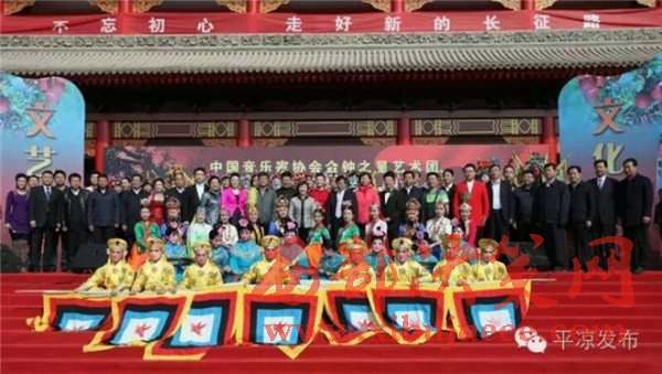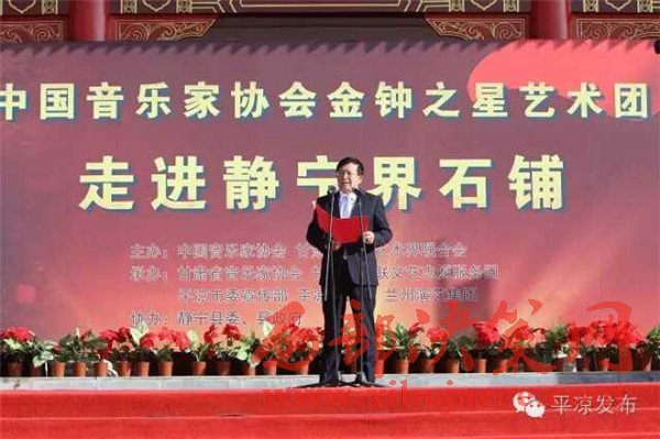 11月3日,在全國上下認(rèn)真學(xué)習(xí)貫徹黨的十八屆六中全會精神、隆重紀(jì)念紅軍長征勝利80周年之際,由中國音樂家協(xié)會、甘肅省文聯(lián)主辦,甘肅省音樂家協(xié)會、甘肅省文聯(lián)文藝志愿者服務(wù)團(tuán)、平?jīng)鍪形麄鞑俊⑵經(jīng)鍪形穆?lián)承辦,靜寧縣委、縣政府協(xié)辦的“長征精神代代傳——中國音協(xié)金鐘之星藝術(shù)團(tuán)‘送歡樂·下基層’慰問演出活動(dòng)”在靜寧縣界石鋪紅軍長征毛澤東舊居紀(jì)念館演出。