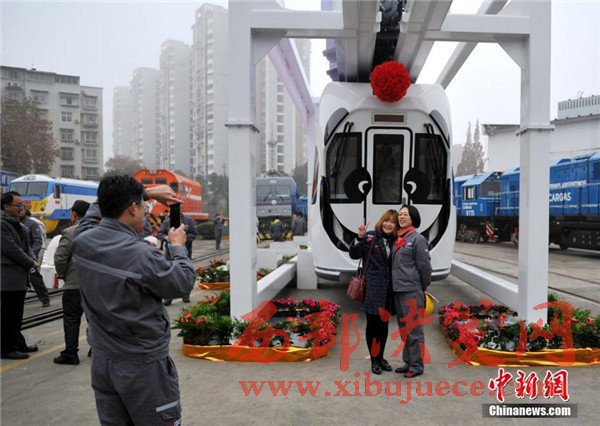 記者在現(xiàn)場(chǎng)看到,正式下線的空鐵車身為卡通熊貓山水圖案,酷似“熊貓”,每列定員144人,時(shí)速最高可達(dá)65公里。列車采用“大容量動(dòng)力蓄電池充放電控制技術(shù)”,通過實(shí)現(xiàn)高倍率放電,提高列車起動(dòng)加速性能及對(duì)極限環(huán)境的適應(yīng)性,同時(shí)能將400千瓦的電制動(dòng)功率全部用于動(dòng)力電池快速充電,實(shí)現(xiàn)制動(dòng)能量回收再利用,延長(zhǎng)蓄電池續(xù)航里程達(dá)120千米。圖為車身外繪制有熊貓山水圖案。