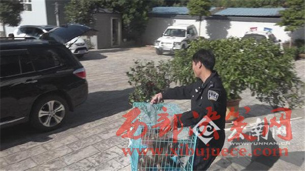 12月13日,新平縣森林公安局接到戛灑鎮(zhèn)林業(yè)站轉(zhuǎn)警稱:“一只猴子四處搗亂,被群眾送到了戛灑鎮(zhèn)派出所,請(qǐng)派員處理。”接警后,縣森林公安局民警立即出警,前往派出所共同處理。