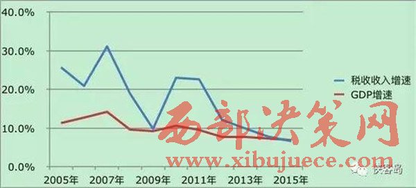過去十年的稅收收入增速與GDP增速