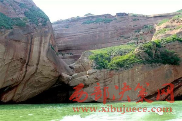 靖邊八景之一的“紅崖曉鏡”就在現(xiàn)在的水上丹霞的位置。靖邊縣志記載,“在杜家大臺(tái)兩岸,紅峽對(duì)峙,中留一線,曉日初升,恍是高樓仙境”。這里過去叫草溝灣,曾是水草豐美,水鳥棲息,水清如鏡,兩岸赤壁對(duì)峙,為靖邊的一大景觀。