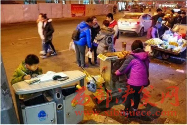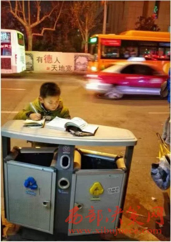 原標(biāo)題:寒夜中 這個8歲男孩趴在垃圾桶上寫作業(yè)