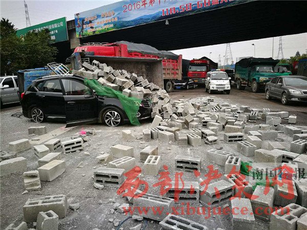 磚車側(cè)翻寶駿被"埋" 事發(fā)柳州柳長路6人受傷