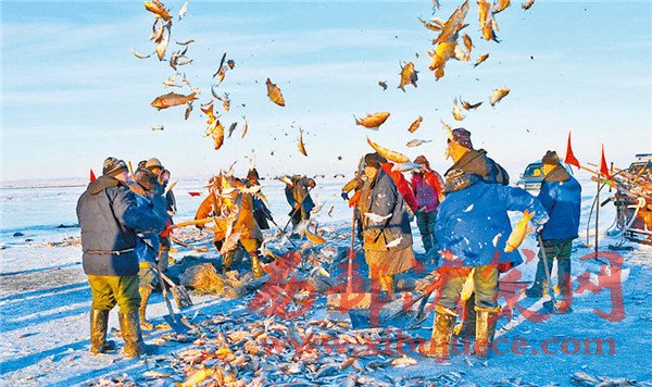 圖為12月26日,呼倫湖漁業(yè)公司工人拋魚(yú)作業(yè),讓魚(yú)盡快凍結(jié)。
