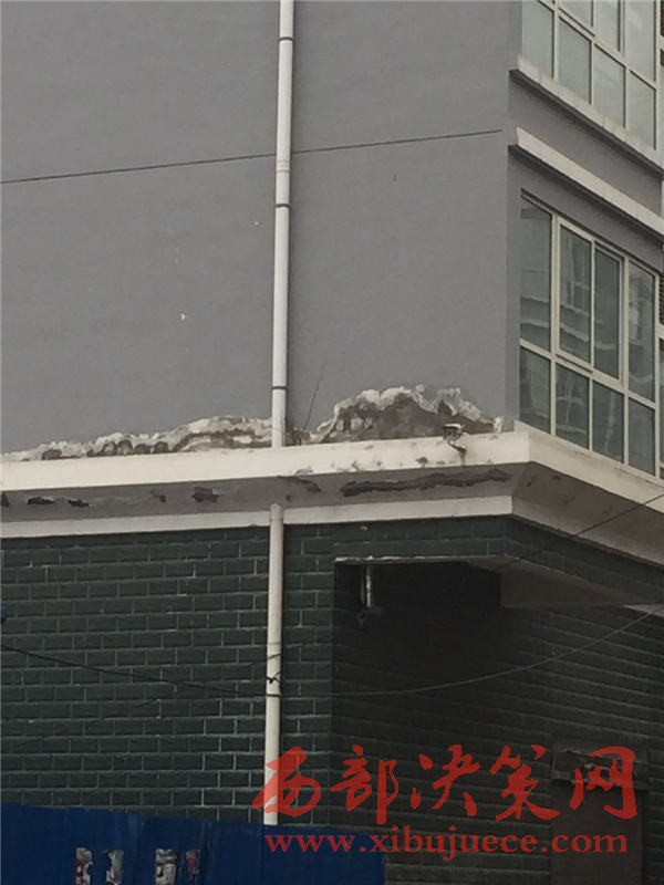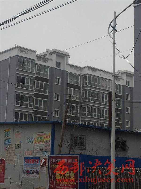 2016年12月21日,我社工作人員在反映人的帶領(lǐng)下來到洛南縣景村鎮(zhèn)政府對面的陜南移民安置工程小區(qū)(怡景佳苑),看見整棟房屋確實存在反映人說的那樣、墻皮大面積脫落;河道內(nèi)淤泥堆積、河水渾濁不堪。