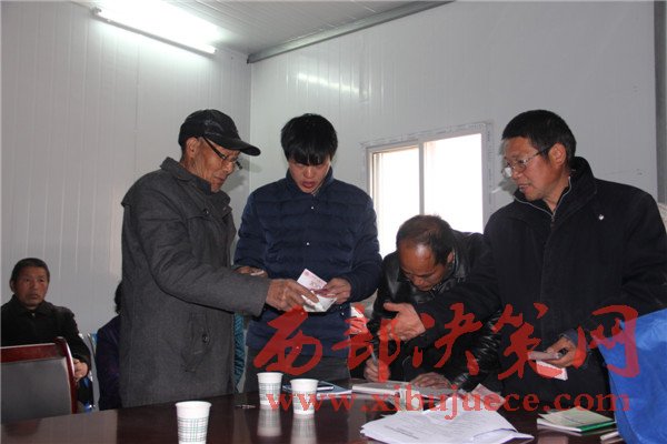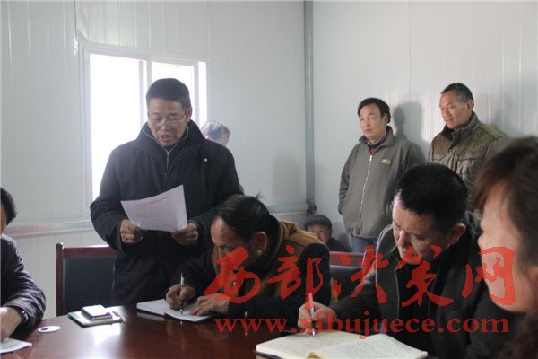 王存山(左1)在群山豬苓合作社成立大會上宣讀合作社章程。