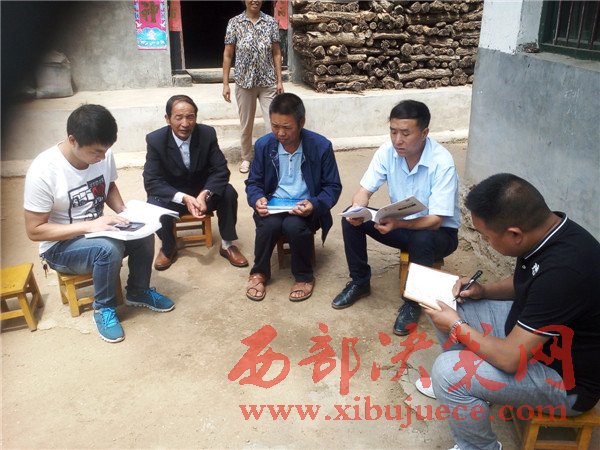 王存山(左三)會同區(qū)扶貧局干部走訪貧困戶社員。