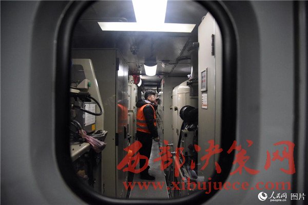 2017年2月3日,司機趙力強對火車頭機械間進行巡檢。