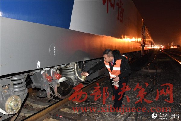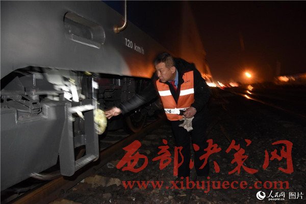 2017年2月3日,司機孫日峰檢查機車走行部。