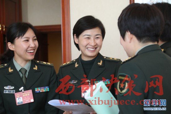 3月7日,全國人大代表劉洋(左二)等在解放軍代表團小組會議間隙交流。在兩會會場內(nèi)外,女代表、女委員、女工作人員、女記者在工作中盡職盡責,展現(xiàn)著自己的風采。
