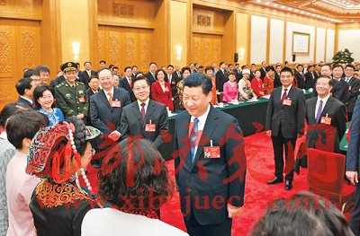 3月8日,中共中央總書記、國家主席、中央軍委主席習(xí)近平參加十二屆全國人大五次會議四川代表團的審議。在“三八”國際勞動婦女節(jié)到來之際,習(xí)近平代表黨中央、國務(wù)院,向參加全國兩會的女代表、女委員、女工作人員,向全國各族各界婦女同胞,致以節(jié)日的祝賀和誠摯的祝福。這是習(xí)近平同女代表親切交談。