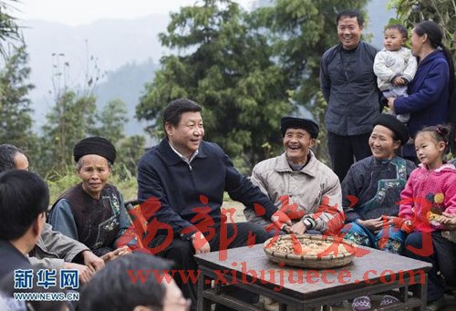 2013年11月3日至5日,中共中央總書記、國家主席、中央軍委主席習(xí)近平在湖南考察。這是3日下午,習(xí)近平在湘西土家族苗族自治州花垣縣排碧鄉(xiāng)十八洞村同村干部和村民座談。