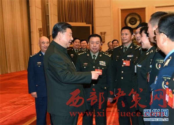 3月12日,中共中央總書記、國家主席、中央軍委主席習(xí)近平出席十二屆全國人大五次會議解放軍代表團全體會議并發(fā)表重要講話。這是會議結(jié)束時,習(xí)近平親切接見來自基層部隊的部分軍隊人大代表。