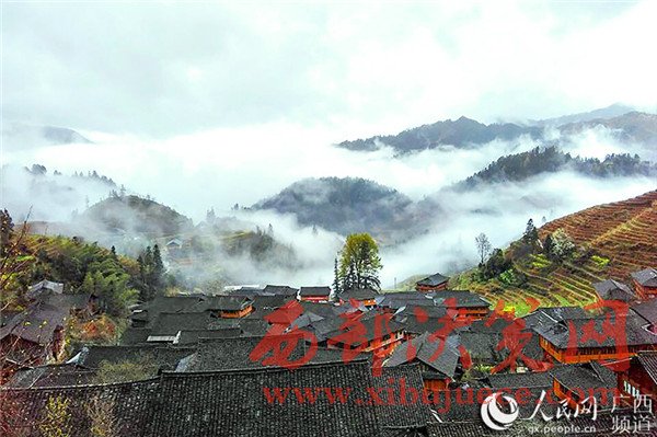 廣西各族小寨村雨后云霧繚繞 宛如美麗的水墨畫(huà)