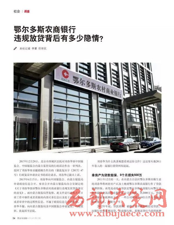 2、在內(nèi)蒙古自治區(qū)紀(jì)委監(jiān)督之下內(nèi)蒙古銀監(jiān)局查出鄂爾多斯農(nóng)商銀行發(fā)放的2000萬、2700萬、2900萬三筆貸款屬于違規(guī)貸款;