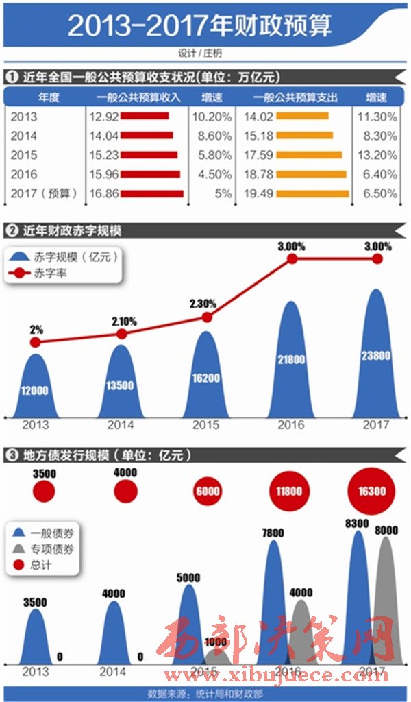 原標(biāo)題:2017年政府預(yù)算收入超27萬億地方債上限提至18.8萬億