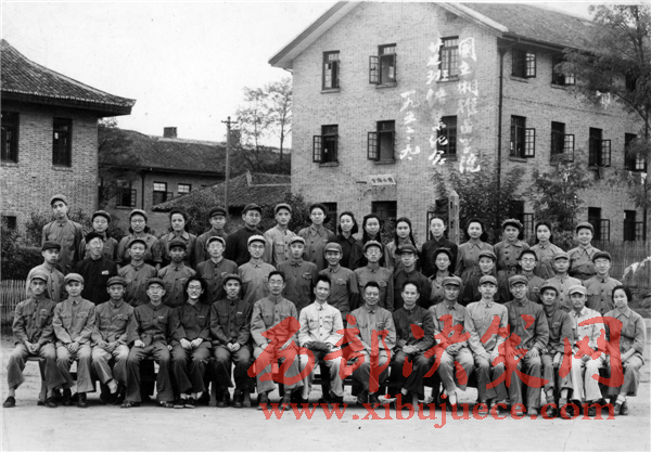 前排正中著淺色服裝的政委的左手側(cè)是凌敏猷校長,鞠躬站在他后面