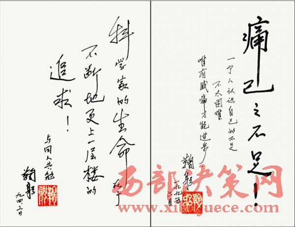 鞠躬院士在自己自傳中寫道:我對自己的評論是無偉業(yè),點燃一支燭光而已??部部揽酪簧?,現(xiàn)在蠟炬已幾乎成灰了。愿我國早日成為培養(yǎng)諾貝爾獲得者的土壤,愿我們世世代代青出于藍(lán)勝于藍(lán)。