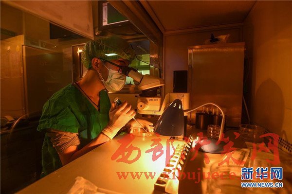 3月20日,廣醫(yī)三院胚胎實(shí)驗(yàn)室人員詹少泉在顯微鏡下?lián)斐龌颊呔栀浀穆炎印?/span>