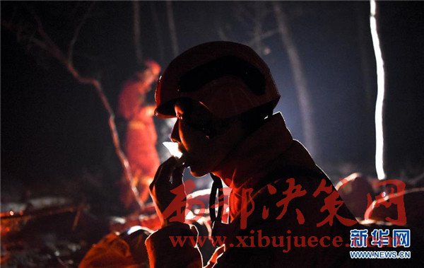 5月4日凌晨,武警內(nèi)蒙古森林總隊(duì)大興安嶺支隊(duì)三大隊(duì)一名戰(zhàn)士在休息時(shí)吃干糧。