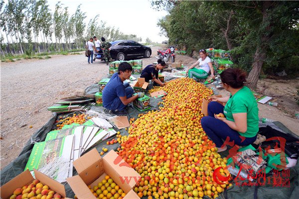 走進周振峰的杏院子,紅彤彤的杏子已經(jīng)壓彎了枝頭,大家正在緊張采摘。在杏園外,從烏魯木齊來的客商買買提·吐爾遜也和自己的員工一起挑揀品質(zhì)較好的杏子進行包裝。他告訴筆者,因為托克遜的杏子每年都比其他地方成熟的要早,所以他每年都要來托克遜收購杏子,每年最少收購400噸。