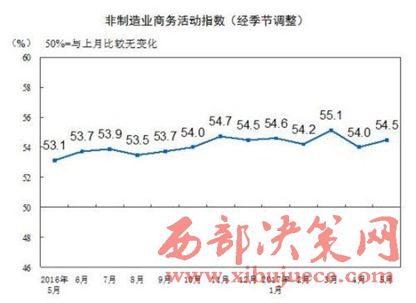 5月份中國非制造業(yè)商務(wù)活動(dòng)指數(shù)環(huán)比上升0.5個(gè)百分點(diǎn)