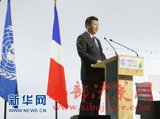 2015年11月30日,國(guó)家主席習(xí)近平在巴黎出席氣候變化巴黎大會(huì)開幕式并發(fā)表題為《攜手構(gòu)建合作共贏、公平合理的氣候變化治理機(jī)制》的重要講話。(記者 黃敬文 攝)