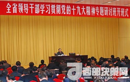 11月29日,全省領(lǐng)導(dǎo)干部學(xué)習(xí)貫徹黨的十九大精神專題研討班在西安開班。省委書記、省長(zhǎng)胡和平出席開班式并講話。 陜西日?qǐng)?bào)記者 宋紅梅攝