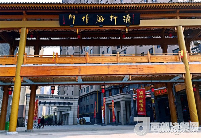 灞柳風(fēng)情街外觀采用仿古建筑群落與民間傳統(tǒng)建筑相組合
