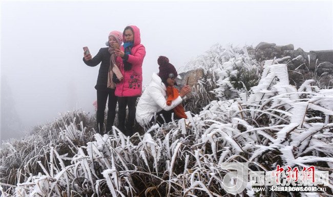 12月17日,福建省長汀縣天井山迎來首場霧凇,吸引不少游客前來觀賞。根據(jù)天氣預(yù)報顯示,未來的一周,長汀縣最低氣溫低至零下2攝氏度,部分高海拔地區(qū)將出現(xiàn)凍雨現(xiàn)象。(張平 攝)