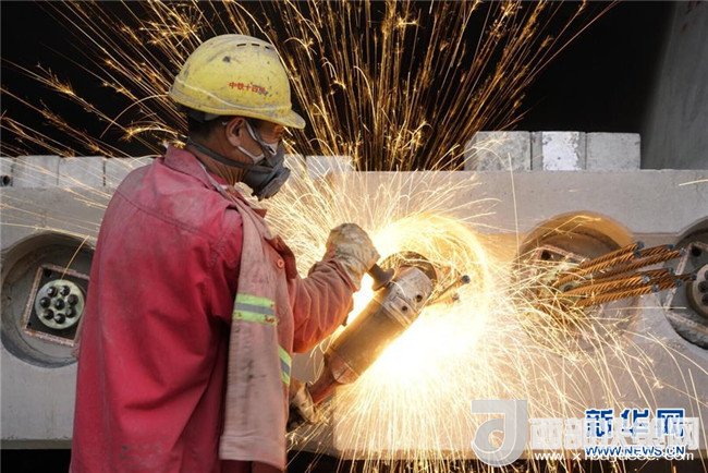 工人在中鐵上海工程局銀西高鐵甘寧段制梁場制作高鐵預(yù)制梁(4月17日攝)。銀西高鐵跨陜西、甘肅、寧夏三?。▍^(qū)),速度目標(biāo)為250公里每小時,計劃2020年建成通車,屆時從西安到銀川將由現(xiàn)在的14個小時縮短至3小時左右。