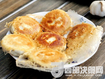 6、等包子熟了,面水快干的時(shí)候再轉(zhuǎn)圈倒入油,改小火。等面水完全成糊咯吱了即可出鍋(用一大尺寸的盤子蓋在包子上,用手按住盤子,反轉(zhuǎn)過鍋來即可)。