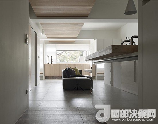 長長的走道并不采取滿鋪的設(shè)計(jì),考慮采光的同時注重收納空間的規(guī)劃,有時不以鞋柜做隔擋空間會有更多的可能。