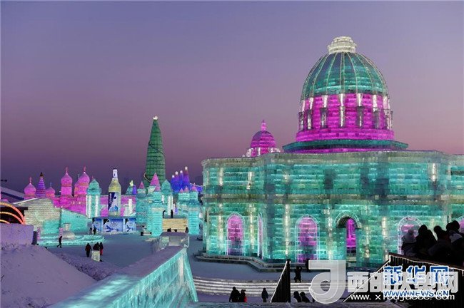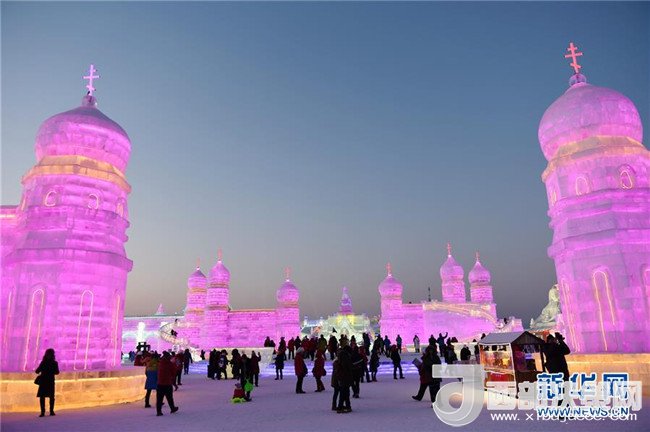 這是冰雪大世界園區(qū)一角。時下正值嚴(yán)冬,第十九屆哈爾濱冰雪大世界每天吸引著來自天南海北的眾多游客。夜幕初降,冰雪大世界園區(qū)流光溢彩、如夢似幻,成為冰雪童話世界。本屆哈爾濱冰雪大世界占地80萬平方米,用冰量18萬立方米,用雪量15萬立方米。