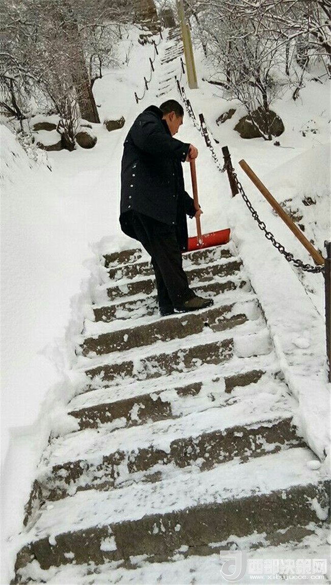 集團(tuán)重點(diǎn)組織清掃了游客中心、進(jìn)山公路及主峰區(qū)道路路面積雪,但由于氣溫驟降,路面結(jié)冰現(xiàn)象嚴(yán)重,員工們頂著刺骨的寒風(fēng),揮著鐵鍬、刮雪板、掃帚等工具清掃厚厚的積雪和冰塊,有效確保了主峰區(qū)路面的貫通。