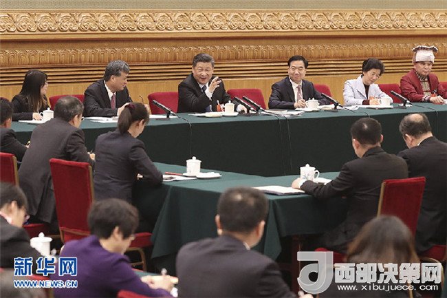 3月10日,習(xí)近平參加十三屆全國人大一次會議重慶代表團(tuán)的審議。(圖片來源:新華社)