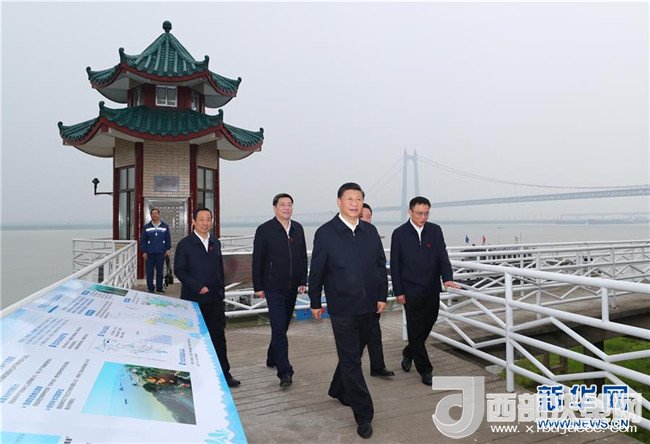 4月26日下午,中共中央總書記、國(guó)家主席、中央軍委主席習(xí)近平在武漢主持召開深入推動(dòng)長(zhǎng)江經(jīng)濟(jì)帶發(fā)展座談會(huì)并發(fā)表重要講話。這是座談會(huì)前,習(xí)近平于24日中午到興發(fā)集團(tuán)宜昌新材料產(chǎn)業(yè)園,察看化工企業(yè)搬遷、改造以及碼頭復(fù)綠情況。新華社記者 鞠鵬 攝