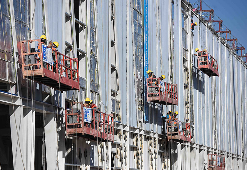 建設(shè)者在雄安市民服務(wù)中心項目現(xiàn)場施工(2月12日攝)。 新華社記者 申宏 攝