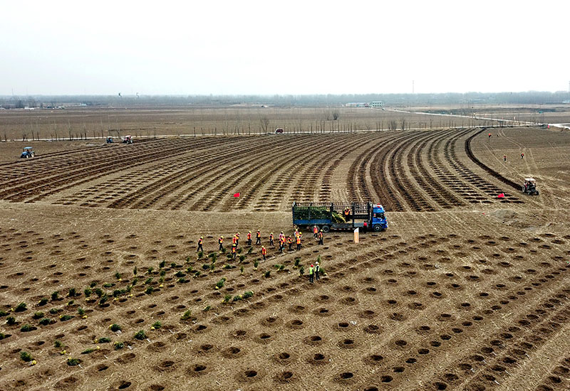這是河北雄安新區(qū)“千年秀林”工程施工現(xiàn)場(3月21日無人機(jī)拍攝)。新華社記者 楊世堯 攝