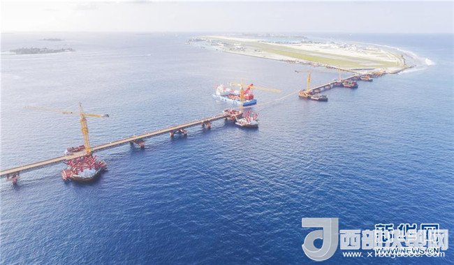 這是2017年7月6日俯拍的馬爾代夫中馬友誼大橋建設(shè)現(xiàn)場(chǎng)。中馬友誼大橋于2016年初正式動(dòng)工,是中馬共建“一帶一路”的重要合作項(xiàng)目。作為馬爾代夫有史以來第一座大橋,同時(shí)也是印度洋上第一座跨海大橋,中馬友誼大橋連通馬爾代夫首都馬累和機(jī)場(chǎng)島,由橋梁、填海路堤及道路等組成,使用壽命100年。新華社發(fā)
