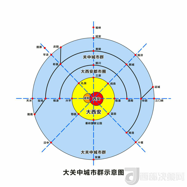 為研究大西安為中心的大關(guān)中城市群,我們先后赴河南、四川、安徽、浙江做了廣泛調(diào)研,并與咸陽(yáng)市、西咸新區(qū)、西安市和省上相關(guān)部門做了深入探討,提出構(gòu)建大西安為中心的大關(guān)中城市群設(shè)想。