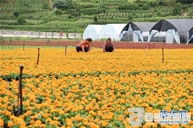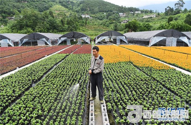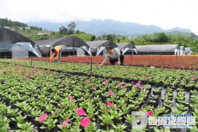 6月12日,艷山紅村村民在村里的花卉基地勞作。近年來,重慶市武隆區(qū)羊角鎮(zhèn)艷山紅村探索“公司+村集體+農(nóng)戶+基地”的經(jīng)營模式,發(fā)展花卉種植等產(chǎn)業(yè),實現(xiàn)了“農(nóng)村資源變資產(chǎn)、資金變股金、農(nóng)民變股東”,幫助當?shù)剞r(nóng)民通過保底分紅、效益分紅、務工收益等方式脫貧增收。新華社記者王全超攝