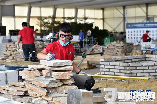 在第45屆世界技能大賽全國選拔賽廣東賽區(qū)比賽現(xiàn)場(chǎng),選手在園藝項(xiàng)目中建造“小公園”(6月25日攝)。新華社記者 梁旭 攝